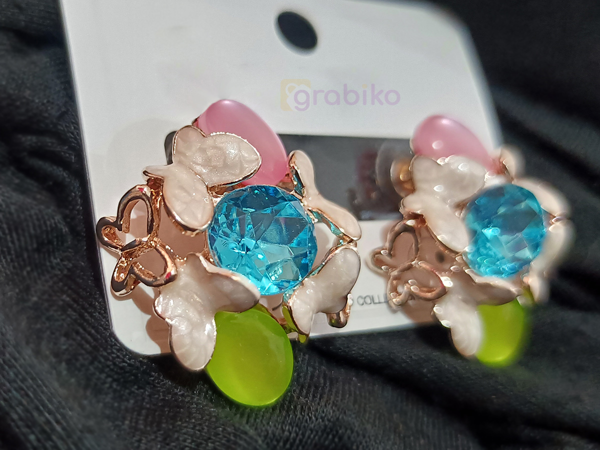 Make every outfit bloom with charm! These Colorful Crystal Flower Statement Earrings are crafted with a stunning blue centerpiece stone, surrounded by soft floral accents and vibrant pink and green detailing. Perfect for parties, casual outings, or festive occasions, these earrings combine elegance with playful vibrance. The rose-gold tone finish adds sophistication, while the lightweight design ensures comfort throughout the day. Pair them with western or traditional outfits for a bold, eye-catching look.