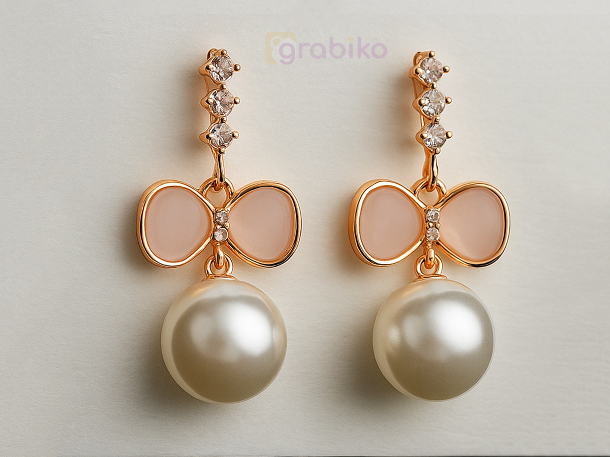 Be the first to review “Elegant Pearl Drop Bow Earrings with American Diamonds”